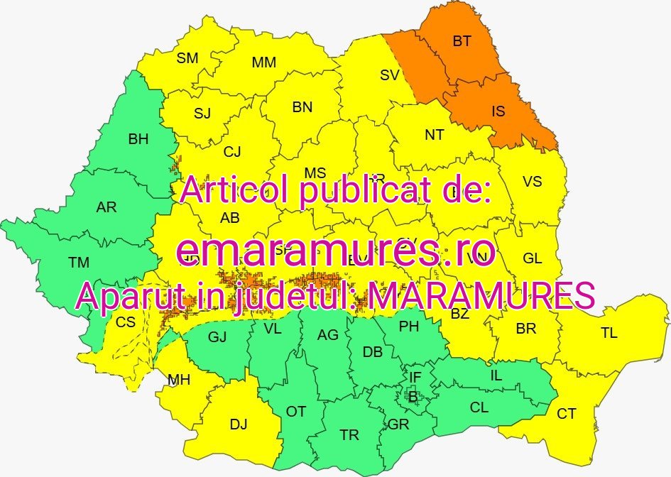 COD PORTOCALIU. Interval de valabilitate: 23 aprilie, ora 12:00 – 23 aprilie, ora 20:00. Fenomen vizate: ntensificări puternice ale vântului. În intervalul menționat, în județele Botoșani, Iași, precum și în zona joasă a județului Suceava temporar vor fi intensificări puternice ale vântului, cu viteze la rafală de 70…90 km/h. Intensificări puternice ale vântului vor fi și în Carpații Meridionali, de Curbură și în Munții Apuseni, la altitudini de peste 1600 m, cu rafale de 90…130 km/h.